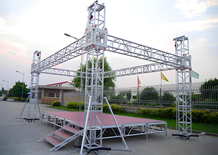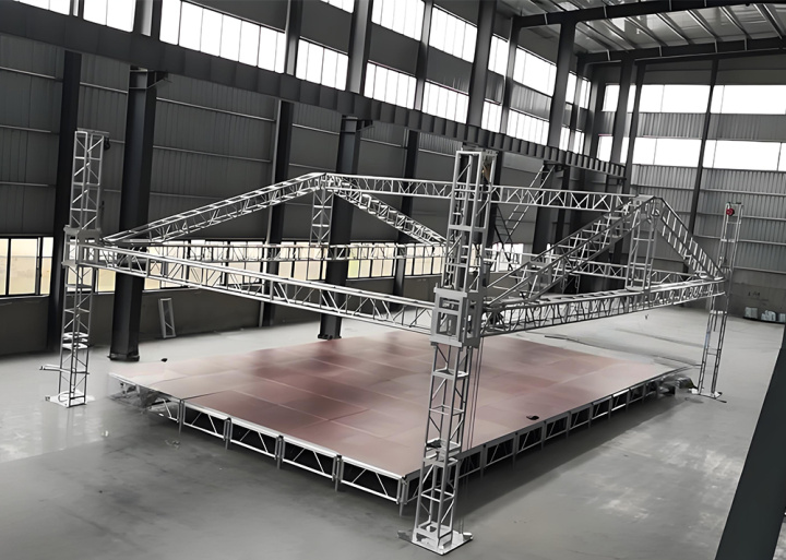 ニーズに応じてステージのサイズと形状を柔軟に調整し、小さなパフォーマンス、記者会見、展示などのさまざまなシナリオに適応できます。トラス構造は、ニーズに応じてサイズ、レイヤー、容量を柔軟に調整し、スポーツイベント、コンサート、展示などのさまざまなイベントシナリオに適応できます。